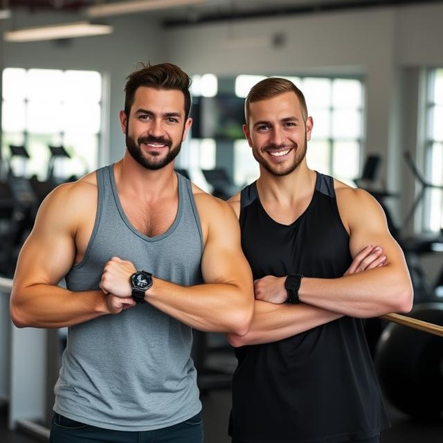 Deepai.org for photo and bios (two realistic gym owners) was prompt for photo and (meet the duo) prompt used for bios